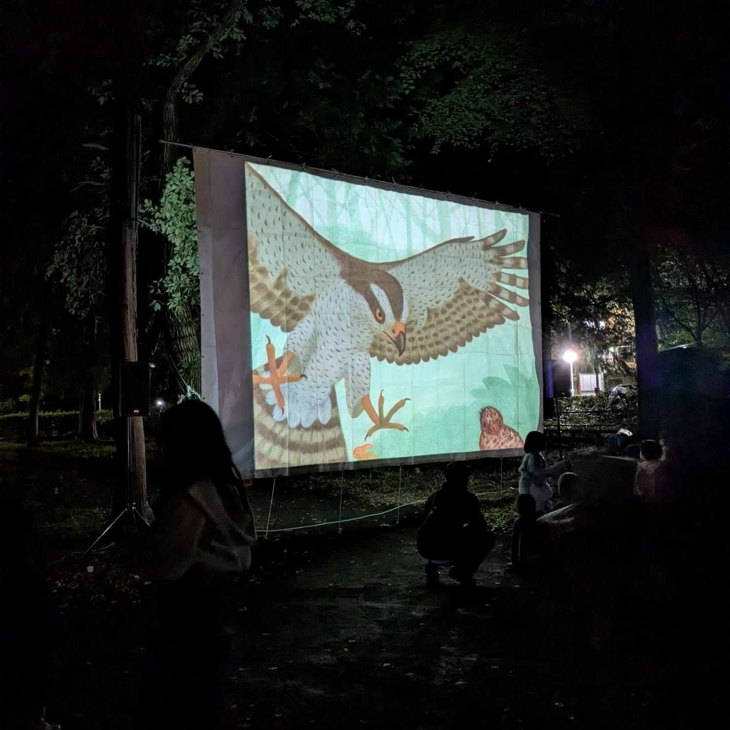 暗闇の林の中で影絵を見たことがありますか?虫の声、土の匂い、真っ暗な中に浮かび上がる大きなスクリーン…。東京の片田舎小平の貴重な自然を活かし、生ナレーション&生演奏での手作り上映。