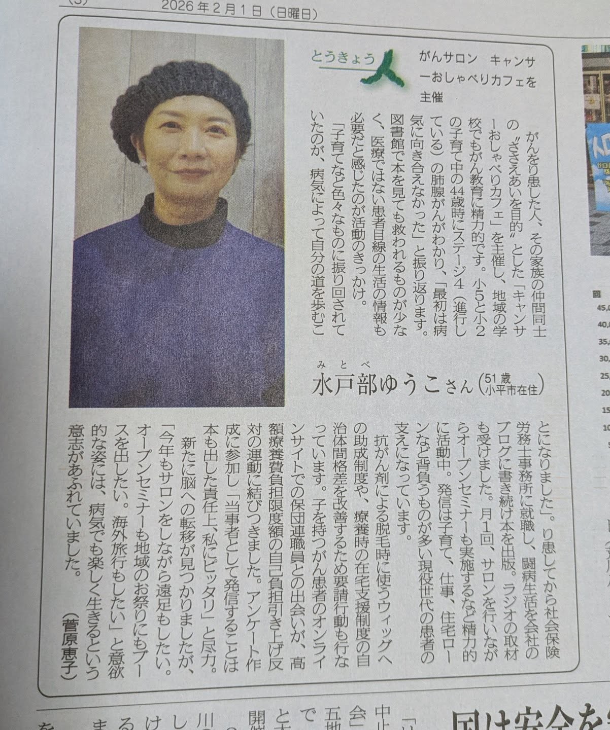 記者さんも、子育てしながら、がん闘病をされた方。熱心に取材してくださいました。